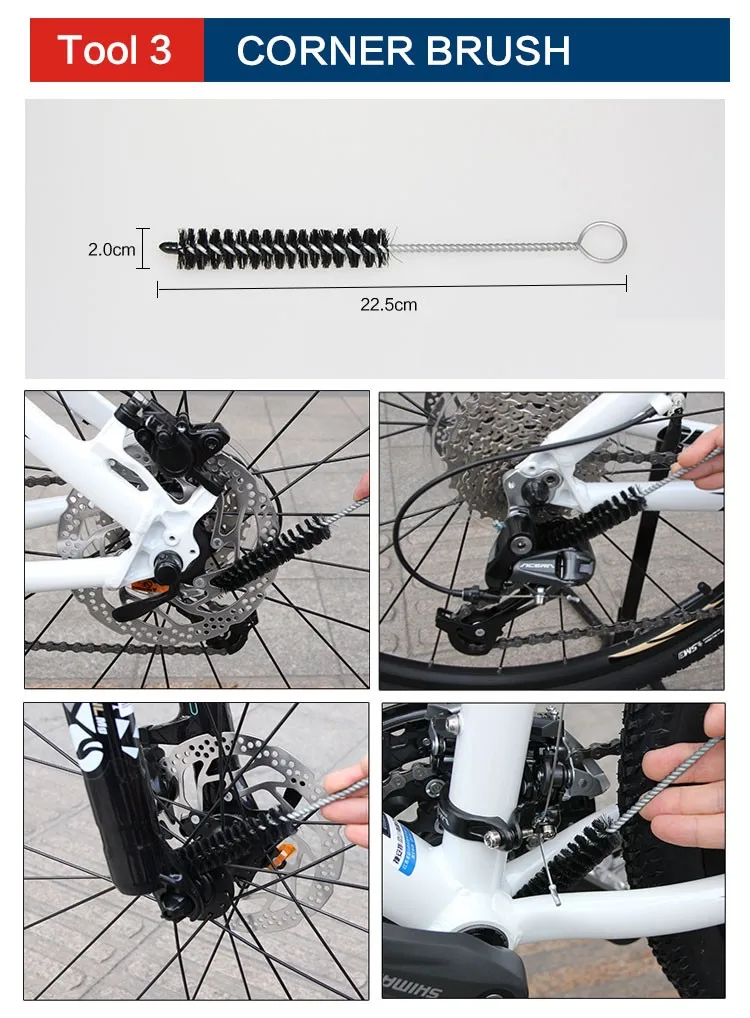 Bicycle Cleaning Tool Set Bike Service Package Gear Tire Disc Brake Chain Scrubber Brush Cleaner Glove