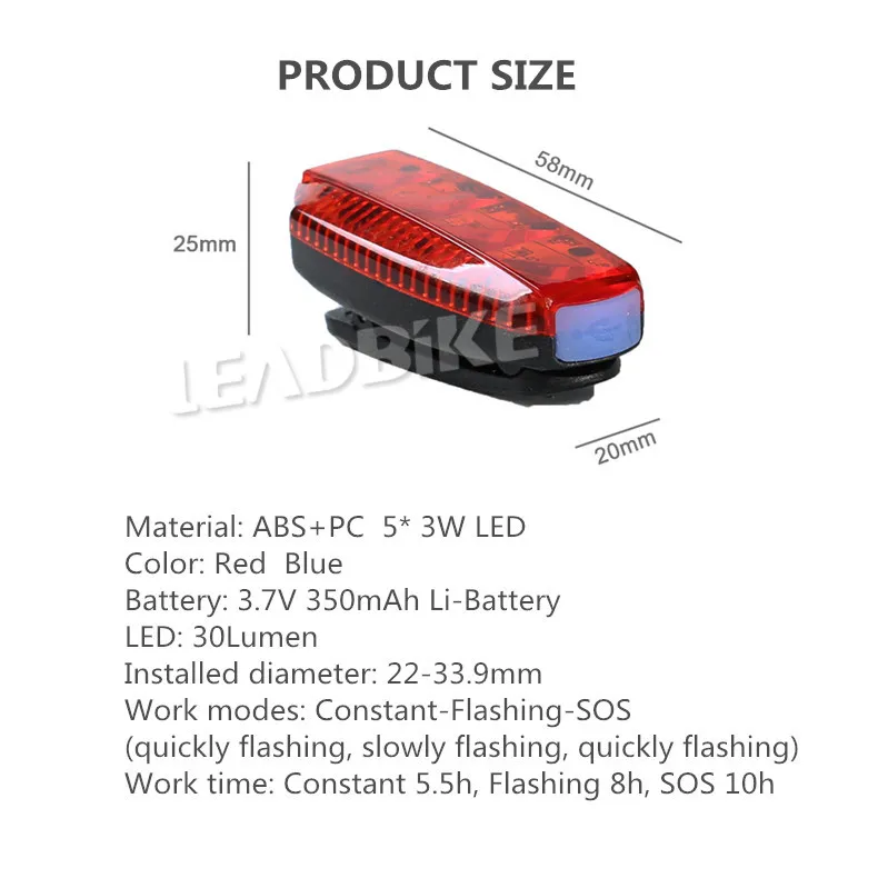 Leadbike Bicycle USB Rechargable LED Waterproof Multifunctional Cycling Bag Running Jogging Safety Warning light